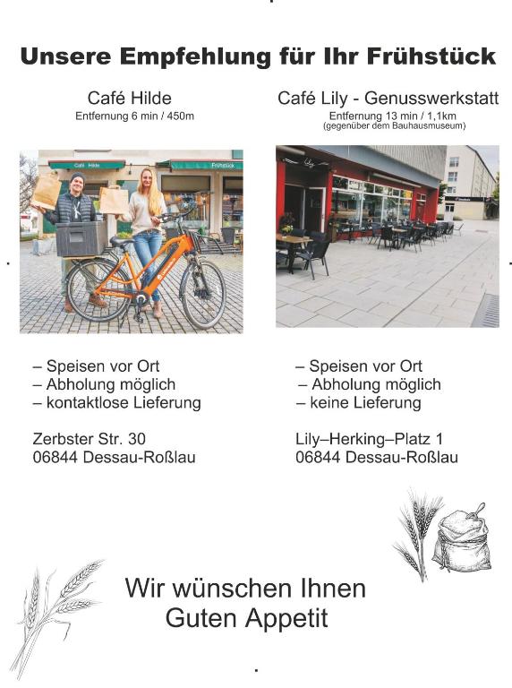 Schön, daß Sie hier sind. Sie besuchen eine Ferienwohnung, die zentral gelegen ist und Ihnen trotzdem Ruhe und Behaglichkeit bietet. Das Bauhausmuseum/Shoppingcenter/Gastronomie erreichen Sie fußläufig in 8min. Wenn Sie noch 10min mehr Zeit haben, sind Sie schon am Bauhaus und den Meisterhäusern. Gönnen Sie sich auch einen Besuch in unserem Dessau-Wörlitzer-Gartenreich. Dabei empfiehlt sich eine Erkundungstour mit dem Fahrrad oder dem PKW.