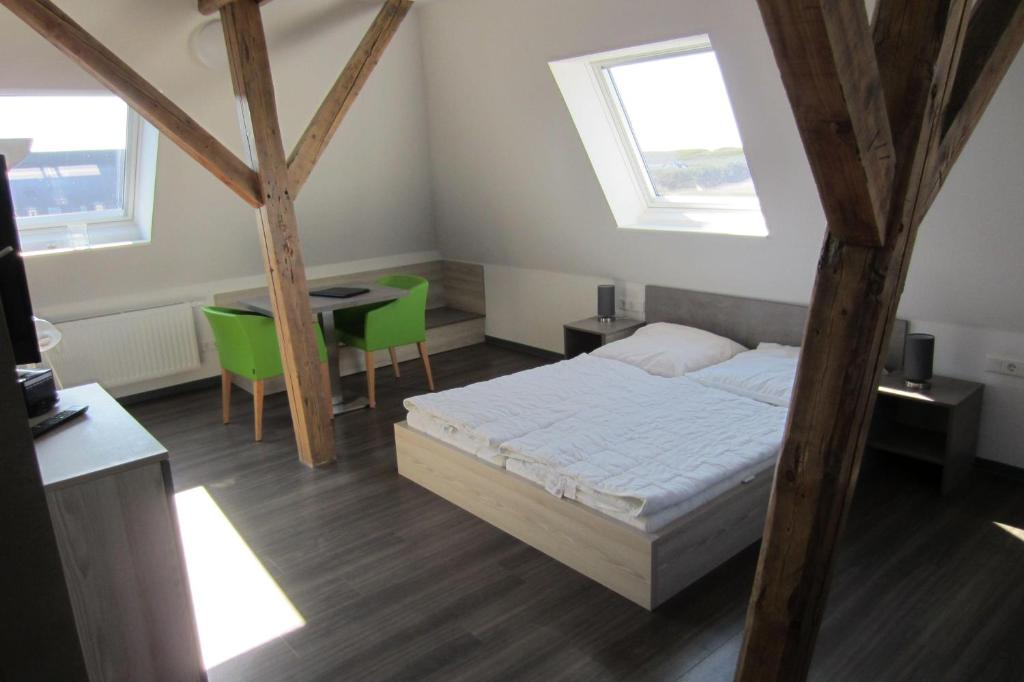 Bitte beachten Sie, dass eine eventuell anfallende Kurabgabe nicht im Gesamtpreis enthalten ist. Diese ist vor Ort zu leisten. Please note that the total price does not include any spa tax. This has to be paid on site. Es erwartet Sie eine neuwertige, modern und helle 1-Raum-Whg. im 3.OG im nördlichen Rantum unweit des Hafens und in der Nähe zur Bushaltestelle "Rantum-Nord / Sylt Quelle". Erst 2017 ist das Obergeschoss unseres Hauses ausgebaut worden und beherbergt nun gemütliche, helle 1-Zimmer-Appartements, aus deren Dachflächenfenstern das Wattenmeer zu sehen ist.Dieses Appartement erreichen Sie entweder komplett über Treppen, oder Sie benutzen den Fahrstuhl bis in die 2. Etage und nehmen dann die Treppe ins Dachgeschoss.Das Appartement ist ca. 35m² groß und verfügt über einen Küchen- und Essbereich sowie ein Doppelbett (160 x 200cm).Das Duschbad ist zeitgemäß mit einem Handtuchheizkörper ausgestattet. Im Gemeinschaftswaschraum stehen Waschautomaten und Wäschetrockner gegen Gebühr zur Verfügung. Keine Haustiere. Es erwartet Sie eine neuwertige, modern und helle 1-Raum-Whg. im 3.OG im nördlichen Rantum unweit des Hafens und in der Nähe zur Bushaltestelle "Rantum-Nord / Sylt Quelle". Die Ferienwohnung befindet sich im Steger-Hüs, dem ehemaligen Haus Stegerwald.