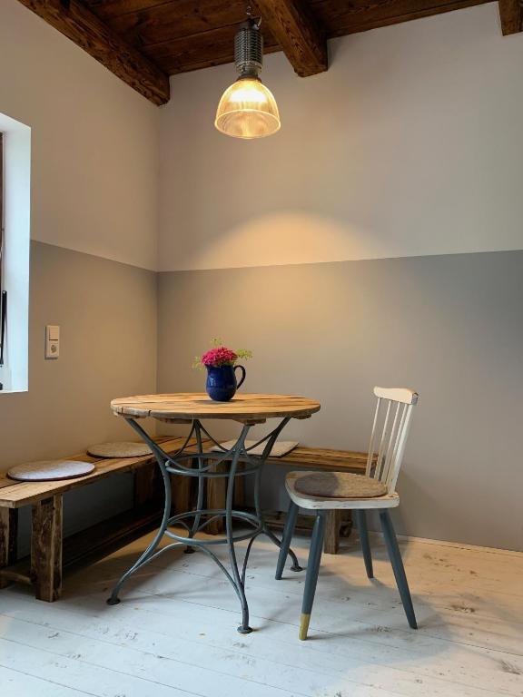 Während der Renovierung fanden wir auf einem Holzbalken eine Zahl 1898. Wir forschten nach und fanden heraus, dass dieses kleine Häuschen in alten Zeiten mal ein Schweinestall, ein Pferdestall und eine Hufschmiede war, bevor es in den frühen 1910 zu einem Wohnhaus umgebaut wurde ... Wir haben uns bemüht das Historische zu erhalten und mit modernem Komfort zu einen. Dies ist uns auf rund 70 qm und zwei Ebenen geglückt. Das außergewöhnliche Ambiente wird durch einen hübschen Innenhof und direkten Zugang zur Medem abgerundet. Um in unserer hektischen Zeit zur Ruhe und zu sich selbst zu kommen, haben wir ganz bewusst auf einen Fernseher verzichtet. Sollten Sie Interesse an Bücher haben statten wir Sie gerne mit passender Literatur aus!