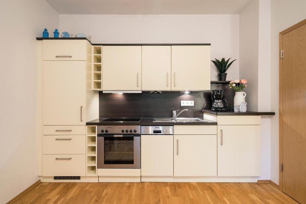 Das Apartment befindet sich im Erdgeschoss und verfügt über 1 Schlafzimmer, Sat-TV und eine voll ausgestattete Küche mit einem Geschirrspüler und einem Kühlschrank. Handtücher und Bettwäsche werden im Apartment gestellt.