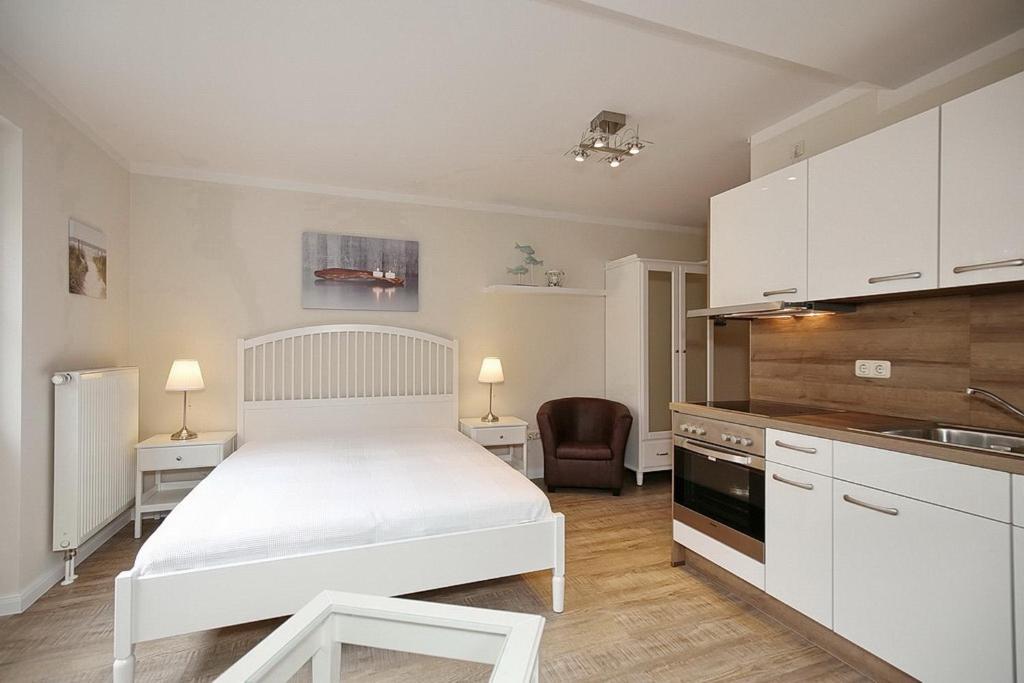 Die Ferienwohnung Nr. 11 in der Strandvilla Krabbe ist eine 1-Zimmerwohnung für bis zu 2 Personen. Mit einer Wohnfläche von 30 m² verfügt die Ferienwohnung im 1. OG des Neubaus über das Wohn-/Schlafzimmer mit Küchenzeile, das Duschbad sowie den Südbalkon. Die Strandentfernung beträgt nur 10 Meter. Im Wohnbereich befinden sich ein Doppelbett (2 x 80 x 200 cm), eine Stereoanlage mit CD-Player und ein TV-Flatscreen. Vom Wohnbereich aus gelangen Sie zum Balkon, der südlich ausgerichtet ist. Hier können Sie auch nach einem ausgedehnten Strandtag die Abendsonne genießen. Die im Wohnbereich integrierte Küche bietet Ihnen eine Mikrowelle, einen Herd mit Cerankochfeld und Backofen, einen Geschirrspüler, einen Kühlschrank, einen Wasserkocher und einen Kaffeemaschine. Die Wohnung verfügt über ein Duschbad mit Fenster. Der Boden in der gesamten Ferienwohnung ist gefliest. Die Strandvilla Krabbe (Whg. 1-7) und das dazugehörige Gästehaus (Whg. 8-14), mit direktem Strandzugang, verfügen über einen Freistellplatz und kostenfreie WLAN-Nutzung. Die Dialysepraxis (EG Gästehaus) ist von Mai bis September geöffnet. Information zur Buchung: Im Mietpreis sind Nebenkosten wie Strom, Wasser und Heizungskosten enthalten. Bettwäsche und Handtücher sind nicht inklusive. Sie können bei uns gegen Gebühr ausgeliehen werden (ohne Beziehen). In der Hauptsaison vom 01.07. bis 31.08. sind lückenlose Buchungen zwingend erforderlich. Den aktuellen Belegungskalender können Sie jederzeit einsehen. Bei Buchungen über den Jahreswechsel beachten Sie bitte die Mindestmietdauer von 5 Übernachtungen.