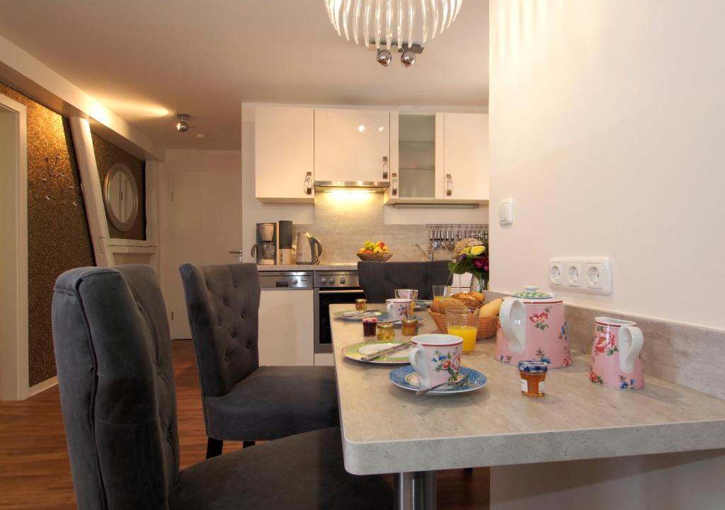 Jede Wohneinheit verfügt über eine voll ausgestattete Küchenzeile mit einem Geschirrspüler, einen Sitzbereich, einen Flachbild-TV, eine Waschmaschine und ein eigenes Bad mit einer Dusche und einem Haartrockner. Ein Kühlschrank, ein Backofen, ein Kochfeld, ein Wasserkocher und eine Kaffeemaschine sind ebenfalls vorhanden.