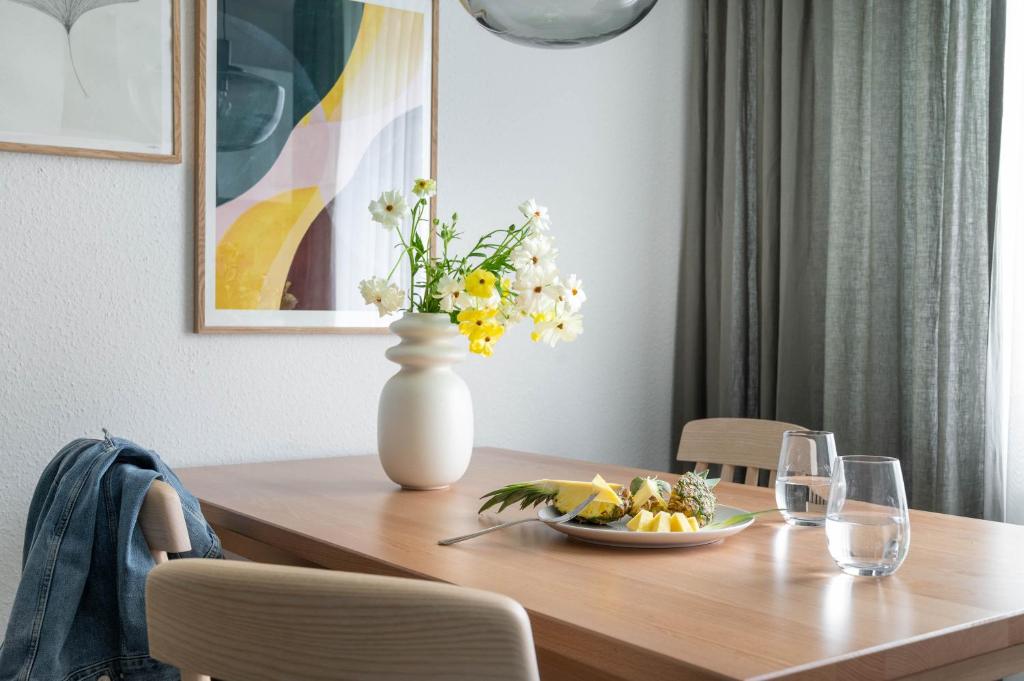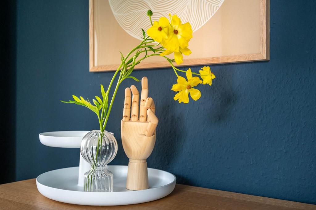 Im Erdgeschoss (Hochparterre) eines Mehrfamilienhauses liegen 3 modern ausgestattete Apartments mit hochwertigen Designermöbeln.