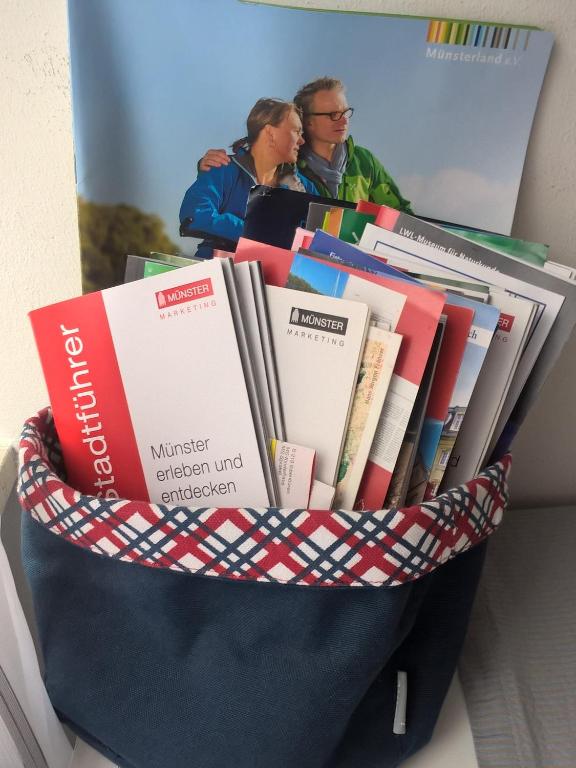 Wir bieten ein 1-Zimmer-Apartment mit Doppelbett, Kitchenette und Bad in ruhiger Lage fußläufig zum Zentrum (ca. 10 Min.). Handtücher, Kaffee, Spüli u.ä. sind vorhanden. Die Ferienwohnung wurde Ende 2015 neu renoviert und eingerichtet. Vor dem Haus kann eine Terrassen mitbenutzt werden (Vorgarten) Auf Wunsch bieten wir an, den Kühlschrank mit Getränken oder Speisen zu füllen (Selbstkostenpreis). Vergessene Badartikel können Sie ebenfalls gegen eine kleine Gebühr bei uns bekommen. Weitere Informationen zu Ausstattung, Lage und Münster: bitte nachfragen ;-)