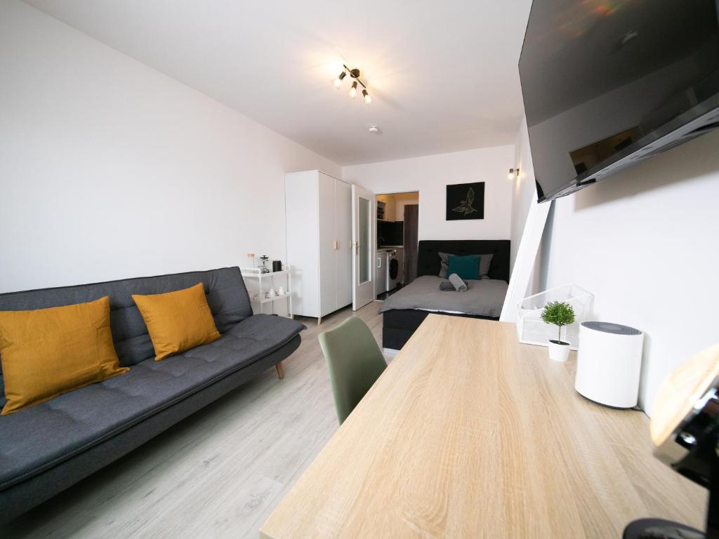 Das Studio Orange - Zentral mit Balkon - Altstadt - Messe liegt im Düsseldorfer Stadtteil Derendorf in der Nähe des Düsseldorfer Schauspielhauses und bietet kostenfreies WLAN und eine Waschmaschine. In der Umgebung des Apartments können Sie Aktivitäten wie Wandern und Skifahren nachgehen.