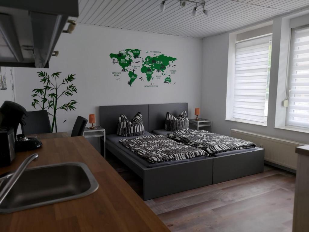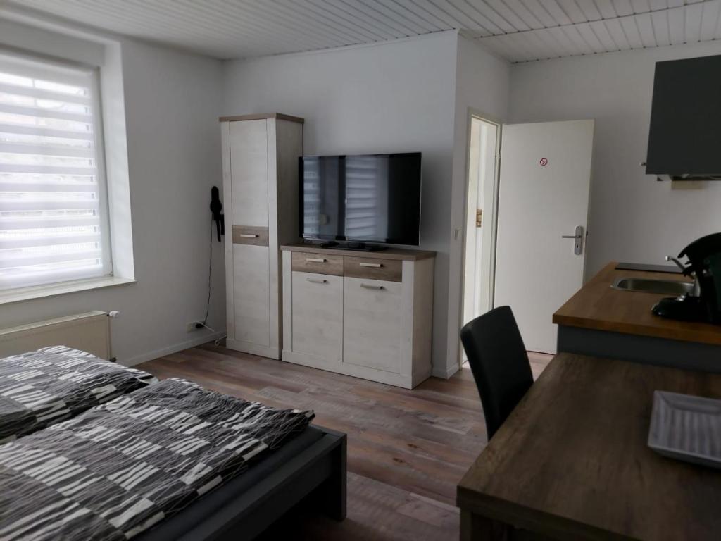 Das gemütlich eingerichtete Studio Struch besteht aus einem kombinierten Schlaf-/Wohnzimmer und einem separaten Bad.