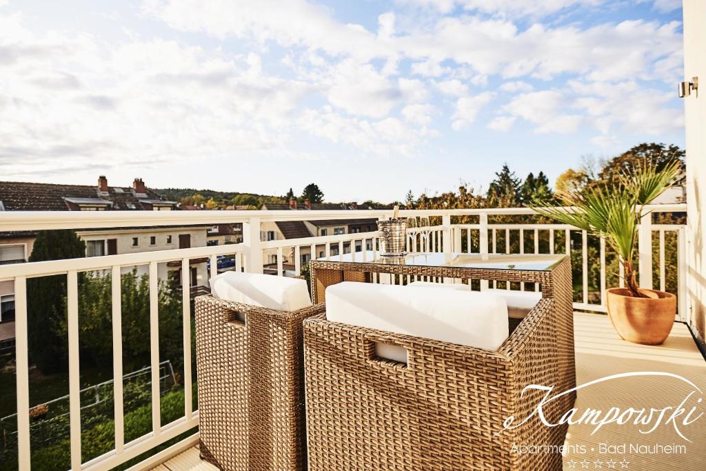 Genießen Sie 5-Sterne Luxus mitten in Bad Nauheim - herzlich willkommen bei Kampowski Apartments Deluxe. Bei uns genießen Sie alle erdenklichen Annehmlichkeiten eines gehobenen Hotels und die Großzügigkeit einer Ferienwohnung in einem Paket. Unsere Apartments wurden mit 5 Sternen ausgezeichnet und verfügen jeweils über eine eigene Design-Küche. Mit einer Fläche zwischen 60 und 70m² gleichen sie einer großzügigen Suite mit einem außergewöhnlichen Raumangebot. Exquisite Materialien und Stoffe sowie auserlesene Bilder und prachtvolle Kronleuchter verleihen den Zimmern einen exklusiven Charakter. Bei uns wohnen Sie in bevorzugt zentraler, aber ruhiger Lage. In nur wenigen Minuten erreichen Sie fußläufig prächtige Parkanlagen, Jugendstil-Ambiente und einladende Flaniermeilen. Auch hervorragende Restaurants sowie Einkaufsmöglichkeiten und Kliniken sind zu Fuß bequem zu erreichen. Die City Frankfurt oder die Stadt Gießen sind nur 23 Min. mit dem Auto oder der Bahn entfernt. Unsere Apartments sind deshalb auch ideal für einen längerfristigen Aufenthalt von einigen Wochen oder Monaten. Unser Service wird während Ihres Aufenthalts dafür sorgen, dass Sie sich rundum wohlfühlen.