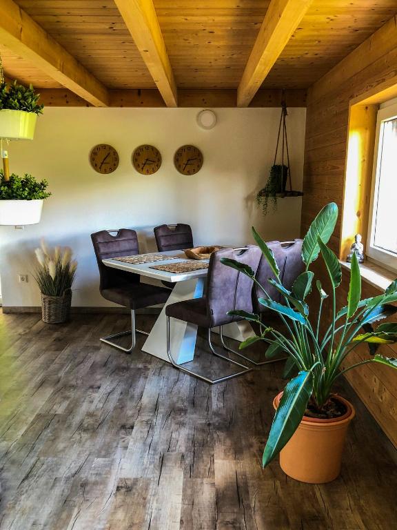 Das Surrbach Chalet ist ein liebevoll eingerichtetes Ferienhaus mit einer Wohnfläche von ca. 100 m2. Dass Chalet liegt am Waldrand in sehr ruhiger und entspannter Lage. Hier können sie in sonniger Lage auf der Terrasse die Seele baumeln lassen. Ca. 5 Autominuten entfernt liegt das Zentrum von Baiersbronn und in ca. 10 Autominuten fährt man nach Freudenstadt. Die Unterkunft: Das Surrbach Chalet ist ein 2,5-stöckiges, modernes und kleines, feines Haus, welches in den 60er Jahren gebaut und vor kurzem komplett renoviert wurde. Im Erdgeschoss befindet sich der Eingangsbereich mit Garderobe. Des Weiteren gibt es hier ein schönes Schlafzimmer mit großem Doppelbett sowie das Haupt-Badezimmer. Im ersten Stock, eine Treppe hoch, erwartet sie ein gemütlicher Essbereich mit Einbauküche inkl. Soda Stream Wassersprudler, dem Wohnzimmer und einem Gäste-WC. Von hier aus gelangen Sie zu der Empore, einem Schlafzimmer mit Doppelbett - das komplett offen ist mit Blick hinunter auf das Wohnzimmer.