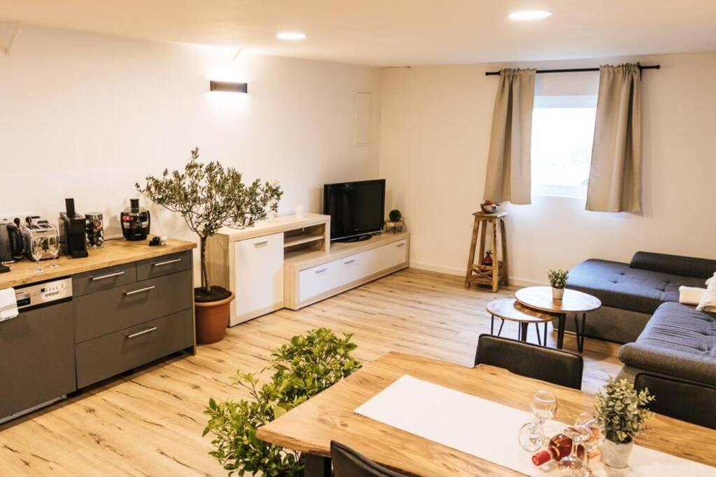 Modern ausgestattetes Studio Appartment im Erdgeschoss. Voll eingerichtete Küche mit Kühl/Gefrierkombination, Wasserkocher, Toaster, Kapselmaschine und Entsafter. Im Raum befindet sich eine große Couchlandschaft, die auch als Schlafgelegenheit genutzt werden kann. Das moderne Badezimmer verfügt über eine Fussbodenheizung und eine Regendusche. Der Zugang zum WC befindet sich in einem separaten Raum. Das Schlafzimmer ist über eine Wendeltreppe zu erreichen. Internetzugang über Wlan verfügbar. Für kuschellige Abende sorgt der im Raum stehende Pellet-Ofen. Die Unterkunft verfügt über ein überdachtes Carport, wo Ihr Fahrzeug sicher abgestellt werden kann. Im Aussenbereich befindet sich eine kleine Sitzgelegenheit.