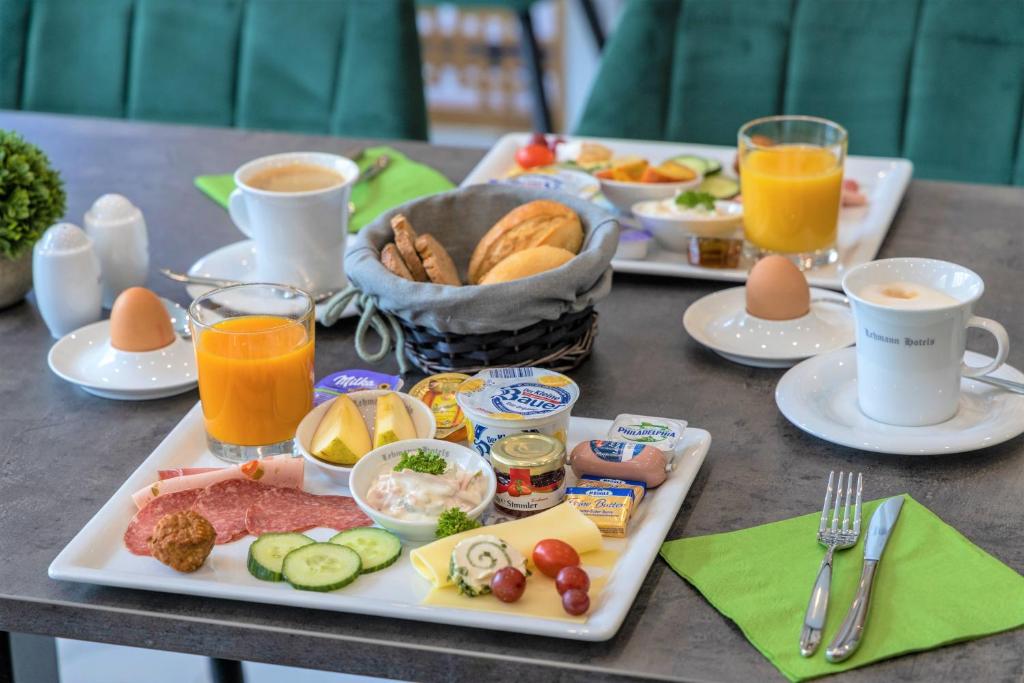 Morgens stärken Sie sich im Hotel am Frühstücksbuffet.