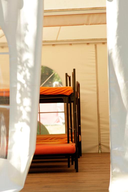 Das TENT verfügt über 160 Etagenbetten in einem gemischten Schlafsaal in einem 500 m² großen Zelt. Sie nutzen ein Gemeinschaftsbad und eine Gemeinschaftsküche. WLAN nutzen Sie im TENT kostenfrei.