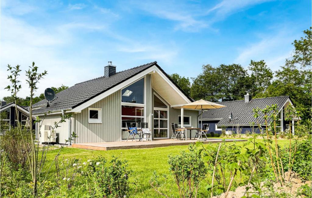 Im Naturpark der Holsteinischen Schweiz gelegen, bietet das Feriendorf Wardersee Urlaubsfreude für die ganze Familie. Zwischen Wäldern, Wiesen, Flüssen und Seen finden Sie hier viel Ruhe und Erholung, malerische Naturlandschaften sowie viele Freizeitaktivitäten für die ganze Familie. Das moderne Holzhaus „Seezauber“ überzeugt durch den skandinavischen Stil und bietet ausreichend Platz für 6 Erwachsene und ein Kleinkind. Aufgrund der firsthoch offenen Decke genießen Sie hier ein angenehmes Raumgefühl und lichtdurchflutete Zimmer. Das erste Schlafzimmer ist mit einem Doppelbett ausgestattet, im zweiten Schlafzimmer befindet sich ein Doppelbett, das zu zwei Einzelbetten auseinander gezogen werden kann. Die Kinder können es sich im dritten Schlafzimmer mit ausziehbarem Tagesbett gemütlich machen. Auf der großzügigen Terrasse können Sie herrlich entspannen und mit der ganzen Familie frühstücken. Gartenmöbel und Sonnenliegen stehen für Sie zur Verfügung. Das dargestellte Gartenhäuschen ist privat und kann nicht genutzt werden. An verregneten Tagen können Sie sich in der Sauna aufwärmen und es sich anschließend vor dem Kaminofen im Wohnbereich gemütlich machen. Für gemeins...