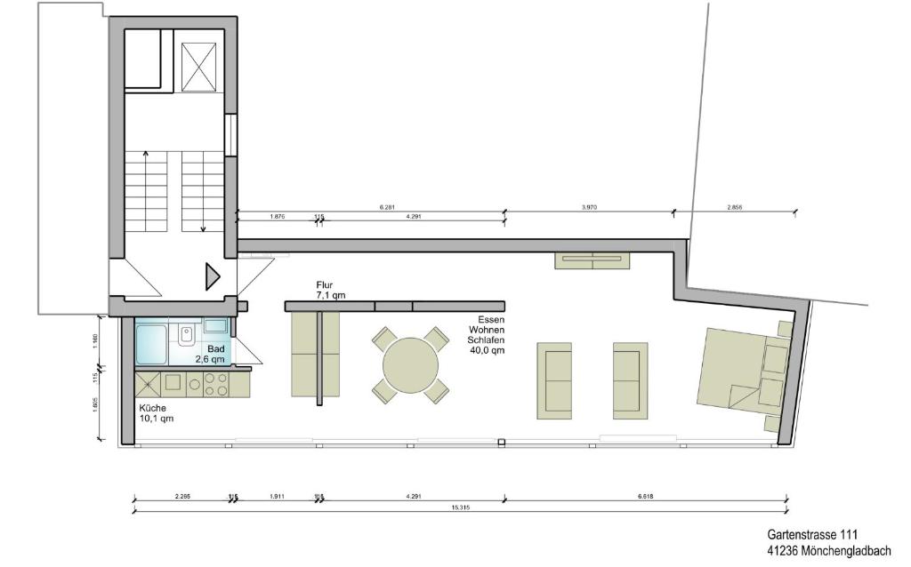 • Wie weit ist die Unterkunft Tolle Loft-Wohnung in 41236 Mönchengladbach-Rheydt vom Zentrum von Mönchengladbach entfernt?