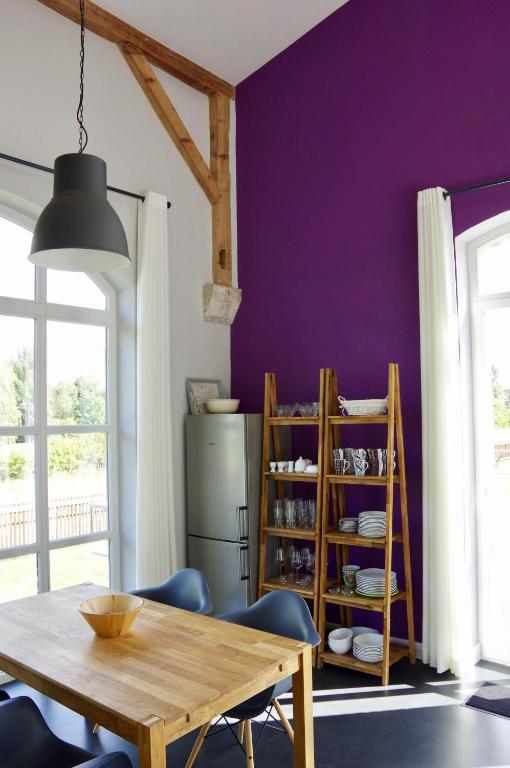 Bitte beachten Sie, dass eine eventuell anfallende Kurabgabe nicht im Gesamtpreis enthalten ist. Diese ist vor Ort zu leisten. Please note that the total price does not include any spa tax. This has to be paid on site. Galeriewohnung für 4 Personen, Terrasse, 2 Bäder, große Holzsprossenfenster Hier wurden vor langer Zeit die Weichen für die vielen Züge gestellt, die in Lauterbach ankamen. Heute dürfen wir Sie in unserem Urlaubsbahnhof im 'Güterboden' einladen. Die FeWo 'Güterboden' überzeugt durch ihre wunderschöne, großzügige und moderne Gestaltung, die durch ihr Farbkonzept beeindruckt und im Kontrast zum altehrwürdigen Backsteingebäude steht. Es erwartet Sie ein lichtdurchfluteter großer Eingangsbereich der die Sicht auf die große, offen gestaltete Ferienwohnung freigibt. Im Erdgeschoß finden Sie den Wohn- und Essbereich mit riesigen Holzsprossenfenstern mit Rundbögen von 3,50 Meter Höhe. Die installierte sehr hochwertige Küche lässt keine Wünsche offen. Hier finden Sie einen sehr leisen Geschirrspüler, den Induktionsherd, die Kaffeemaschine (für gemahlenen / ungemahlenen Kaffee) eine Espressomaschine und vieles mehr. Der gemütliche Holztisch mit den Designerstühlen lädt zum Essen, Spielen und Relaxen ein. Dabei geben die großen Fenster den Blick auf den vorbeifahrenden 'Rasenden Roland' frei. Die Couch, der große 3D Fernseher sowie die Musikanlage mit CD-Spieler und Bluetooth-Anschluss sorgen dafür, dass Sie sich rundum Wohlfühlen können. Der abgeschlossene Schlafraum, der sich komplett abdunkeln lässt, ist mit einem Doppelbett und einem begehbaren Kleiderschrank ausgestattet. Ebenfalls im Erdgeschoß ist noch ein großzügiges mit hochwertiger Keramik ausgestattetes Gäste-WC vorhanden. Durch die hohen Terrassentüren gelangen Sie auf die über 40 qm große Terrasse die nach Süden ausgerichtet ist. Über die Freitreppe kommen Sie auf die Galerie wo sich der offene Schlafbereich mit dem begehbaren Kleiderschrank befindet. Hier ist ein besonderer Ort zum Verweilen und Entspannen für Sie geschaffen worden. Das Bad ist mit einer extragroßen Dusche mit Echtglasabtrennung sowie hochwertigen Sanitärobjekten eingerichtet. Wir haben eine wunderbare Farbgestaltung entworfen, um Ihnen die Urlaubstage noch schöner zu gestalten. Lassen Sie sich überraschen von der geschmackvollen Mischung aus Tradition und moderner Extravaganz, die keine Urlaubswünsche offen lässt!