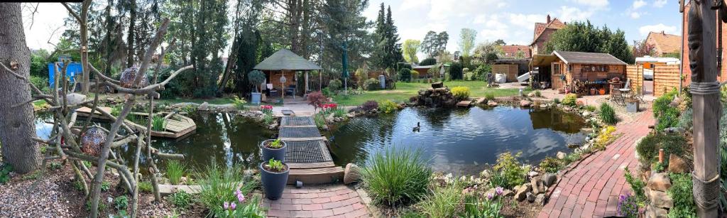 Utspann 8 ist eine neu renovierte Einliegerwohnung die über einen eigenen Eingang verfügt. Wohn- und Schlafzimmer sind über RAUMSPARTREPPEN zu erreichen. Der Garten verfügt über einen Grillbereich und einen wunderschönen Teich der zum relaxen und entspannen einlädt.