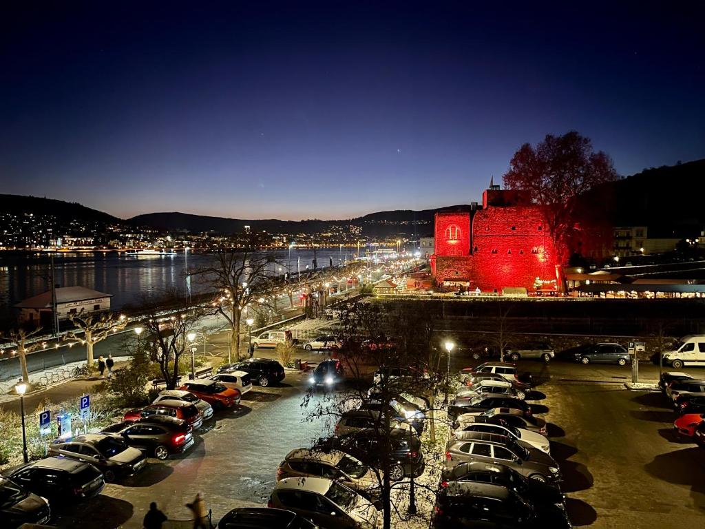 Unsere Ferienwohnung Villa Turm bietet ein äußerst charmantes und einzigartiges Ambiente. Die Villa selbst wurde 1891 erbaut und in den letzten Jahren umfangreich saniert und modernisiert. Im Gebäude selbst befinden sich weitere 4 dauerhaft vermietete Wohnungen. Die Wohnung ist schallisoliert 5, damit Sie nicht durch einen vorbeifahrenden Zug oder anderen Lärm gestört werden. Beginnen Sie den Tag mit einem Frühstück im "Türmchen" und blicken Sie auf den Rhein und genießen Sie abends bei einem Glas Wein den Sonnenuntergang. Auf jeden Fall haben Sie eine fantastische Aussicht! Eine hochwertige Küche und ein Ankleidezimmer stehen Ihnen zur Verfügung. Dieses Apartment bietet Platz für maximal 6 Personen. Ein gläserner Aufzug bringt Sie nach oben, sodass Sie nur eine halbe Treppe zur Wohnung hinaufsteigen müssen.