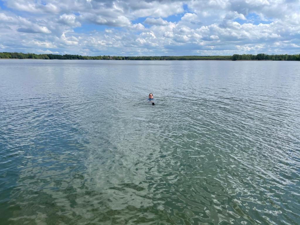 Das Ferienhaus bietet einen Grill. Im Wandlitzsee können Sie Tischtennis spielen oder in der Umgebung wandern oder schnorcheln.