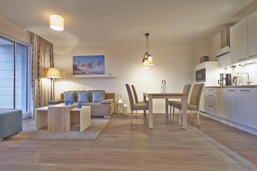 Die Lage Die exklusive und helle Suite befindet sich in nördlicher Lage im Erdgeschoss des Aparthotels. Die Ostsee liegt Ihnen hier buchstäblich zu Füßen - in nur 30 Metern erreichen Sie den kilometerlangen Naturstrand über einen direkten Zugang vom Aparthotel. In der unmittelbaren Umgebung finden Sie Einkaufsmöglichkeiten, Restaurants und Cafés sowie reizvolle Freizeitangebote und Ausflugsziele: Wander-und Radwege, Wellness- und Fitnesseinrichtungen sowie zahlreiche kulturelle Veranstaltungen. Reitställe und Golfplätze, Yachthäfen, Tennis-und Squash-Zentrum befinden sich ebenfalls in unmittelbarer Nähe.