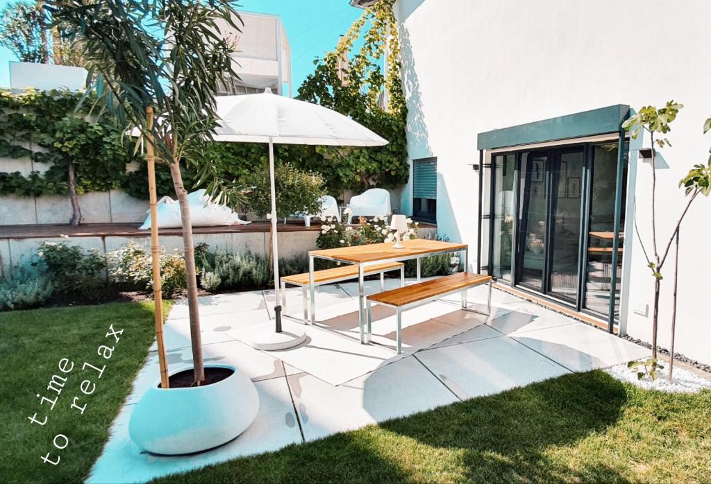 Das Weingut Hans Bausch erwartet Sie mit einer Terrasse in Hattenheim in der Weinregion Rheingau. Die Terrasse des Gebäudes bietet Aussicht auf die We