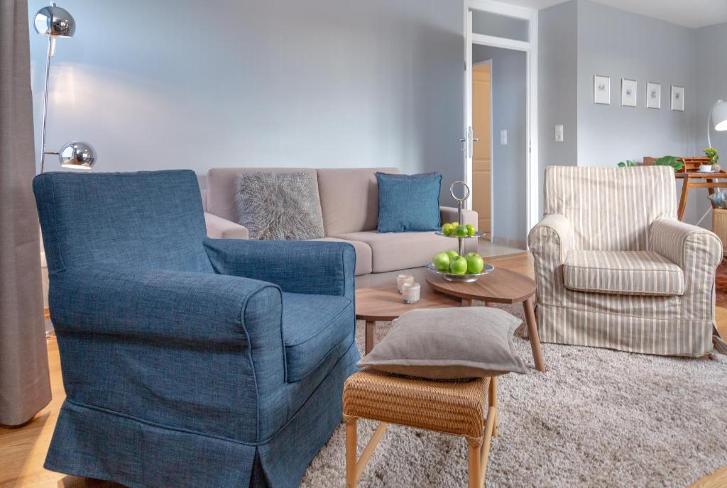 Das Apartment umfasst 2 Schlafzimmer, ein Wohnzimmer, eine voll ausgestattete Küche mit einem Kühlschrank und einer Kaffeemaschine sowie 1 Bad mit einer Badewanne oder einer Dusche und einem Haartrockner. Ein Flachbild-Kabel-TV und ein CD-Player sind ebenfalls vorhanden.
