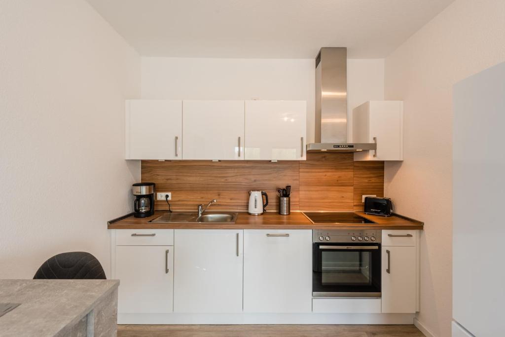 Die Unterkünfte verfügen über Parkett, einen Sitzbereich mit einem Flachbild-Kabel-TV, eine voll ausgestattete Küche mit einem Essbereich und ein eigenes Bad. Ein Geschirrspüler, ein Kühlschrank, ein Backofen, ein Wasserkocher und eine Kaffeemaschine sind ebenfalls vorhanden.