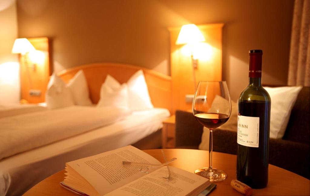 Morgens steht ein herzhaftes Frühstücksbuffet für Sie bereit. Das Restaurant serviert klassische deutsche und regionale Spezialitäten. In den Abendstunden können Sie eine Auswahl des Weins aus hoteleigener Produktion probieren.