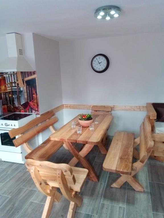 Dieses Ferienhaus verfügt über 2 Schlafzimmer, eine Küche mit einem Kühlschrank und einem Backofen, einen Flachbild-TV, einen Sitzbereich und 1 Bad mit einer Badewanne. Handtücher und Bettwäsche werden in dieser Unterkunft gestellt.