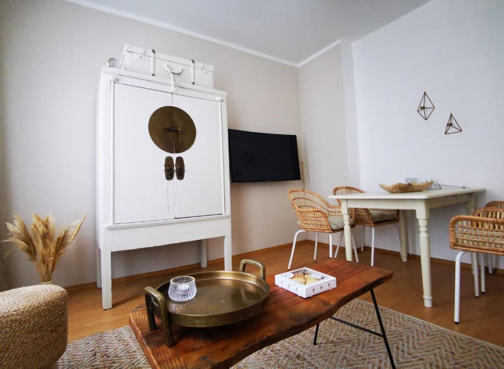 Jede Wohneinheit verfügt über eine voll ausgestattete Küche mit einem Geschirrspüler, einen Sitzbereich, einen Flachbild-TV, eine Waschmaschine und ein eigenes Bad mit einer Dusche und einem Haartrockner. Ein Kühlschrank, ein Backofen, ein Kochfeld, ein Wasserkocher und eine Kaffeemaschine sind ebenfalls vorhanden.