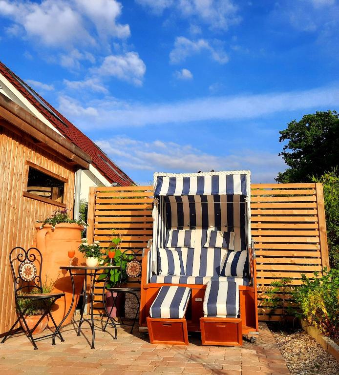 Louisenlust steht für Freude am Leben. Komfort und Gemütlichkeit machen den Aufenthalt zu einem Genuss. Trotz ruhiger Ortsrandlage ist die Innenstadt gut zu Fuß erreichbar. Bis zur Ostsee sind es 15 km. Die 40 qm große, helle Wohnung liegt im ersten Stock eines 2019 fertiggestellten Hauses. Sie ist mit Liebe zum Detail ausgestattet. Der große Wohnraum verfügt über eine komplett ausgestattete Küchenzeile, einen Essbereich sowie eine gemütliche Sofa-Ecke mit Farb-TV. Im Schlafzimmer steht ein franz. Bett. Das moderne Bad ist mit DU/WC ausgestattet.