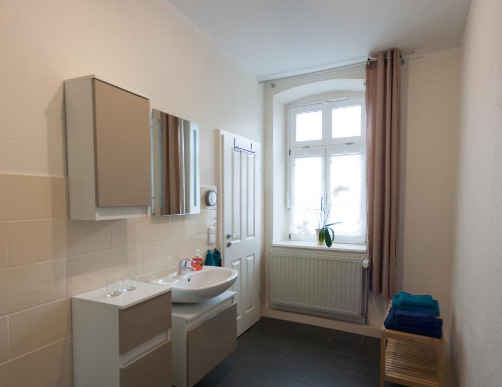 Mit einem Garten bietet die Unterkunft Wohnen im Denkmal Übernachtungsmöglichkeiten in Quedlinburg mit kostenlosem WLAN und Stadtblick. Diese Ferienwohnung besticht durch kostenlose Privatparkplätze und befindet sich in einer Gegend mit Möglichkeiten zum Wandern und Fahrradfahren. Diese Ferienwohnung ist ausgestattet mit 1 Schlafzimmer, einer Küche mit einem Kühlschrank und einem Ofen sowie 1 Badezimmer mit einer Dusche und einem Haartrockner. In dieser Ferienwohnung werden Handtücher und Bettwäsche zur Verfügung gestellt. Die Sehenswürdigkeit Bahnhof Quedlinburg liegt 500 m von der Unterkunft Wohnen im Denkmal entfernt, während die Sehenswürdigkeit Altstadt Quedlinburg 800 m von der Unterkunft entfernt ist. Der nächstgelegene Flughafen ist der Flughafen Leipzig/Halle, 107 km von der Unterkunft Wohnen im Denkmal entfernt.