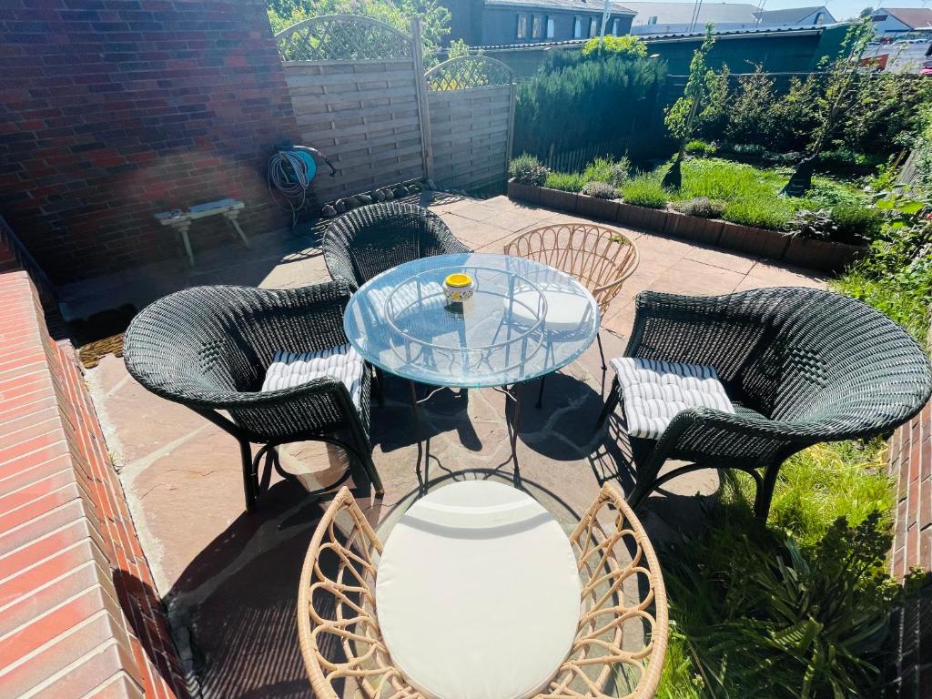 • Hat die Unterkunft Zentrales, kuscheliges Ferienhaus in Tinnum eine Terrasse?