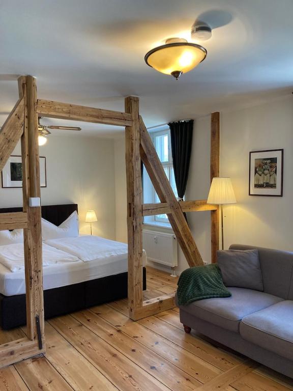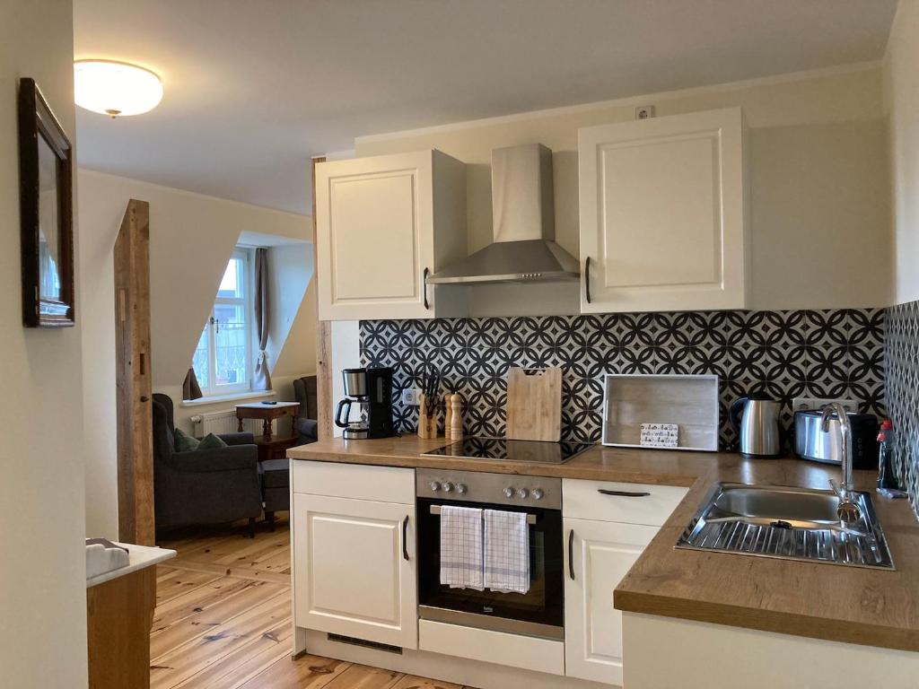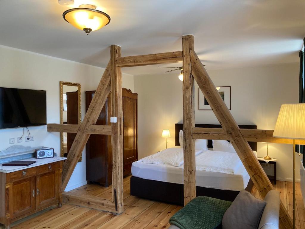 Unsere neuen allergikerfreundlichen Nichtraucher-Apartments für zwei Personen bieten Ihnen ein Schlafzimmer, ein Wohnzimmer mit Aufbettungsmöglichkeit sowie eine voll ausgestattete Küche. Alle Bäder sind im nostalgischen Stil modernisiert und mit einer Regendusche versehen worden. Die alten historischen Holzdielen sowie einzelne alte Möbelstücke, die aufwändig aufgearbeitet wurden, erinnern an längst vergangene Zeiten. Unter unserem Nussbaum im Garten finden Sie ein schattiges Plätzchen nach einem ereignisreichen Tag. Kostenfreies WLAN steht Ihnen im gesamten Gebäude zur Verfügung.